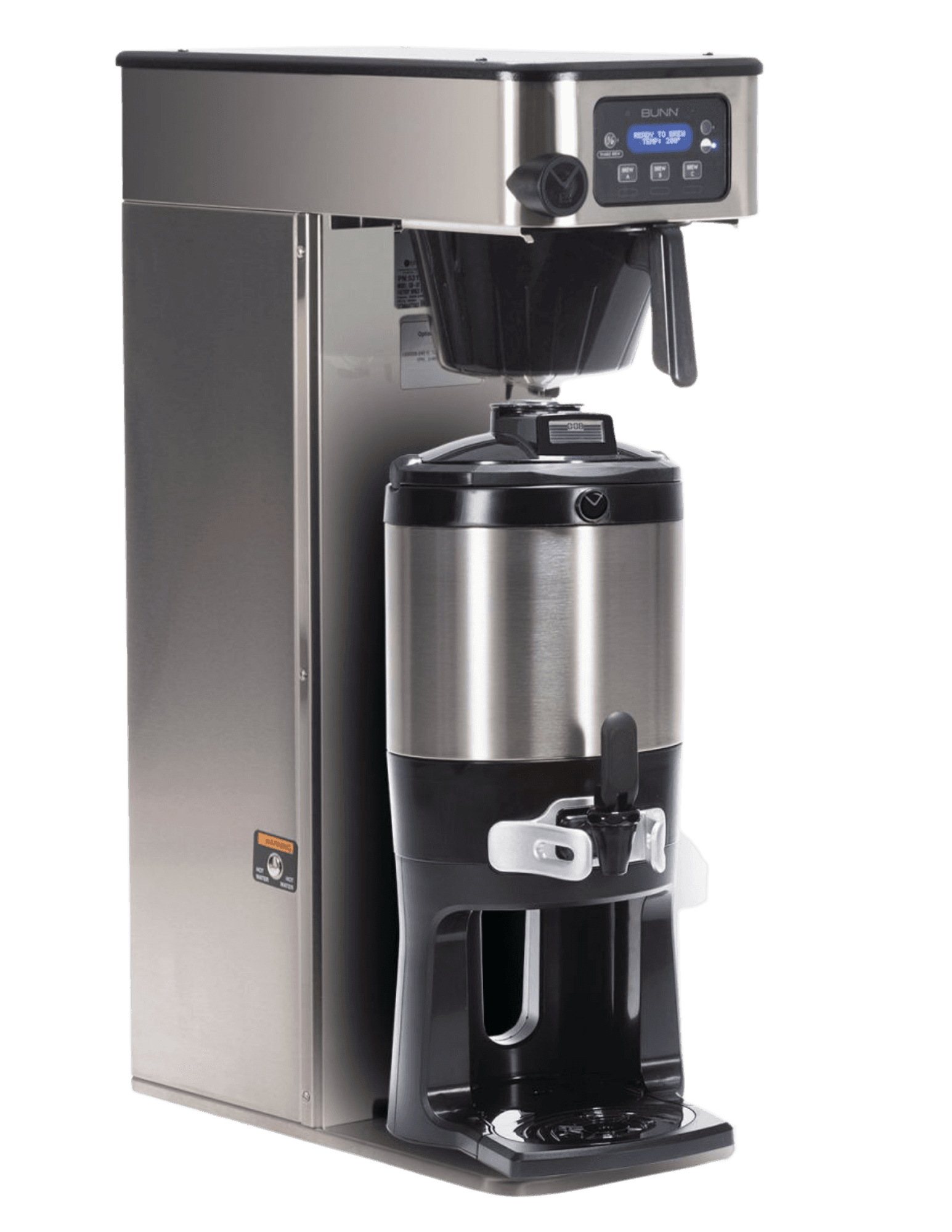 Commercial drip brewer with digital controls and pulse-brew technology. Brews directly into a thermal server. Water line required. Our most recommended batch brewer for mid-to-large offices.