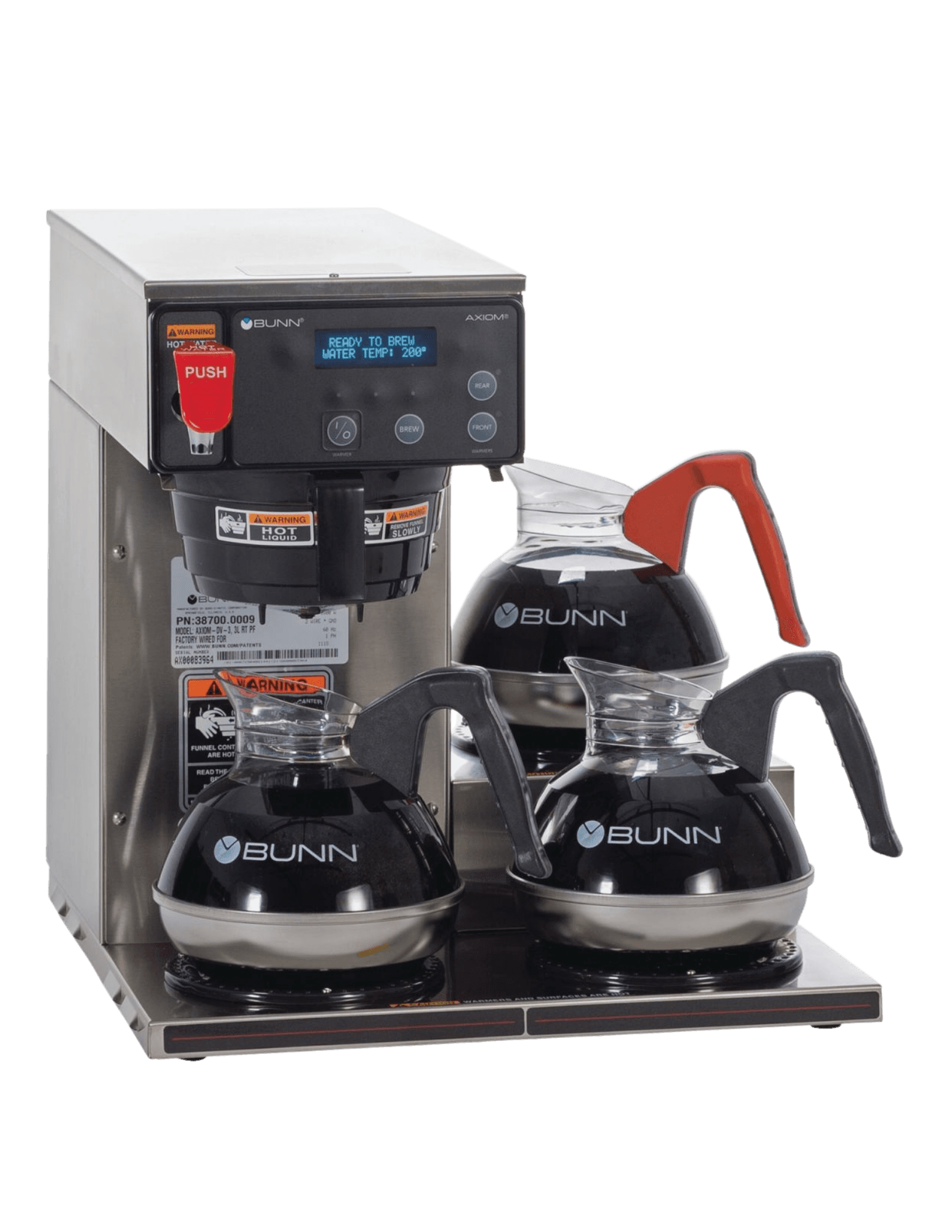 Twin-head batch brewer for maximum throughput. Two pots brewing simultaneously means coffee is always available even in the busiest breakrooms and offices.