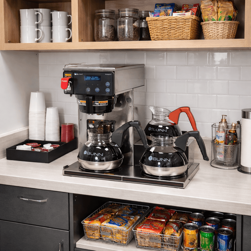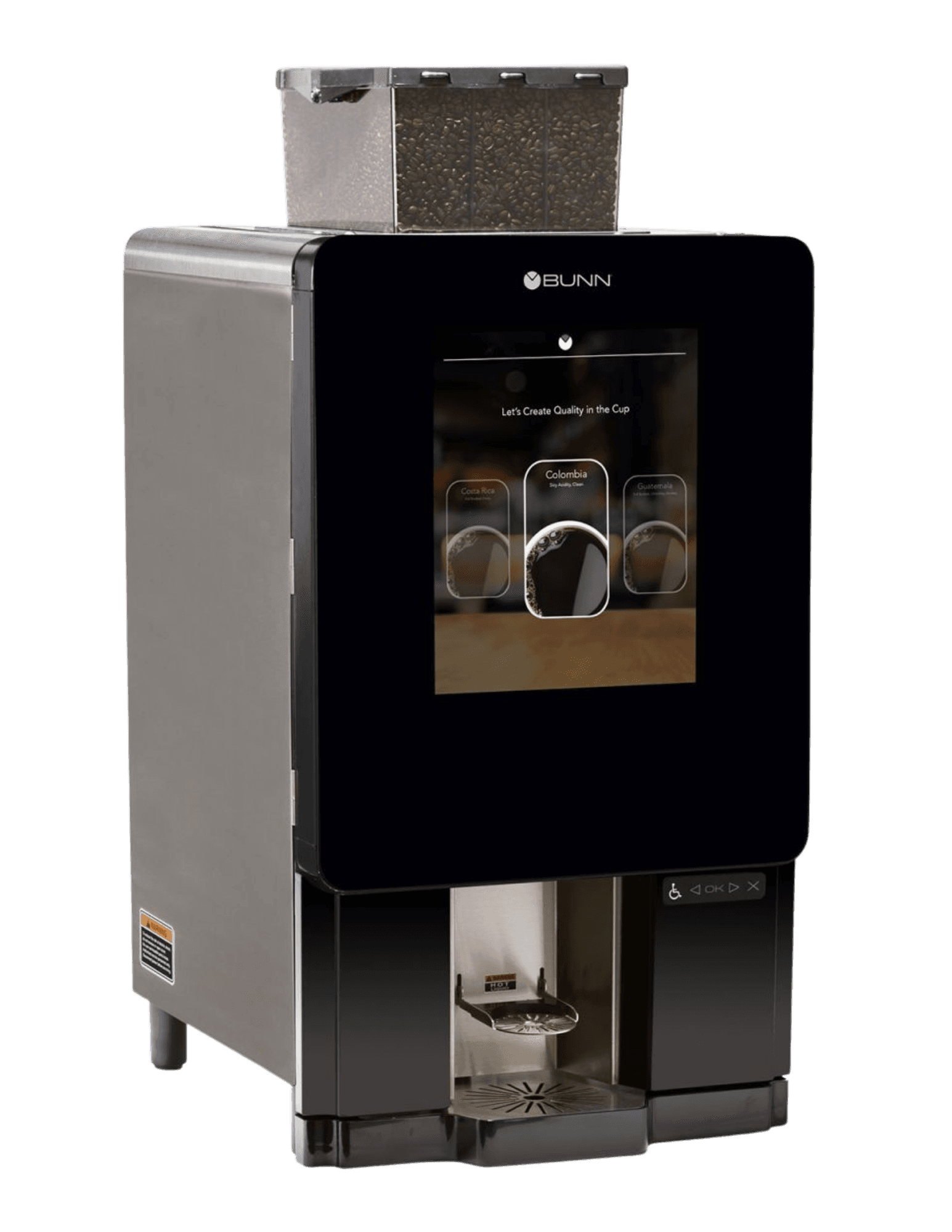 High-volume super-automatic. Brews black coffee, cappuccino mixes, tea, and hot chocolate. Built for locations where volume and reliability matter most.