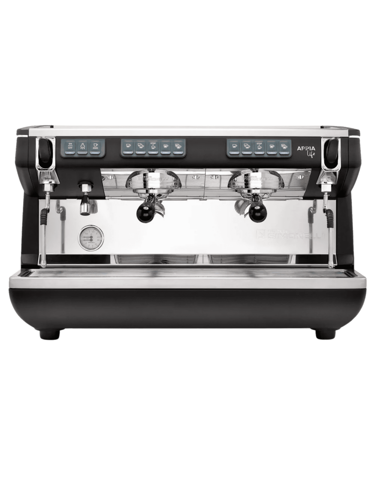 2-group commercial espresso machine which may serve 2 drinks at a time. The standard for medium offices that want authentic espresso. Comes with a separate whole bean grinder.