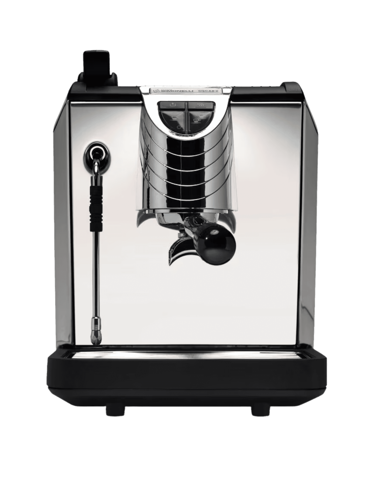 Compact espresso machine with a clean, modern design that looks great on any countertop. Pulls espresso shots with a steam wand for milk drinks.